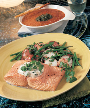 Place 1 salmon fillet on each of 6 plates. Serve with watercress mayonnaise.