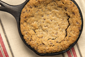 This particular chocolate chip cookie is a bit different in that it passes up the dough-scooping step and simply utilizes a cast-iron skillet to make a big, soft, gooey cookie. Without all the scooping, you’ll have this cookie mixed and in the oven in short order.